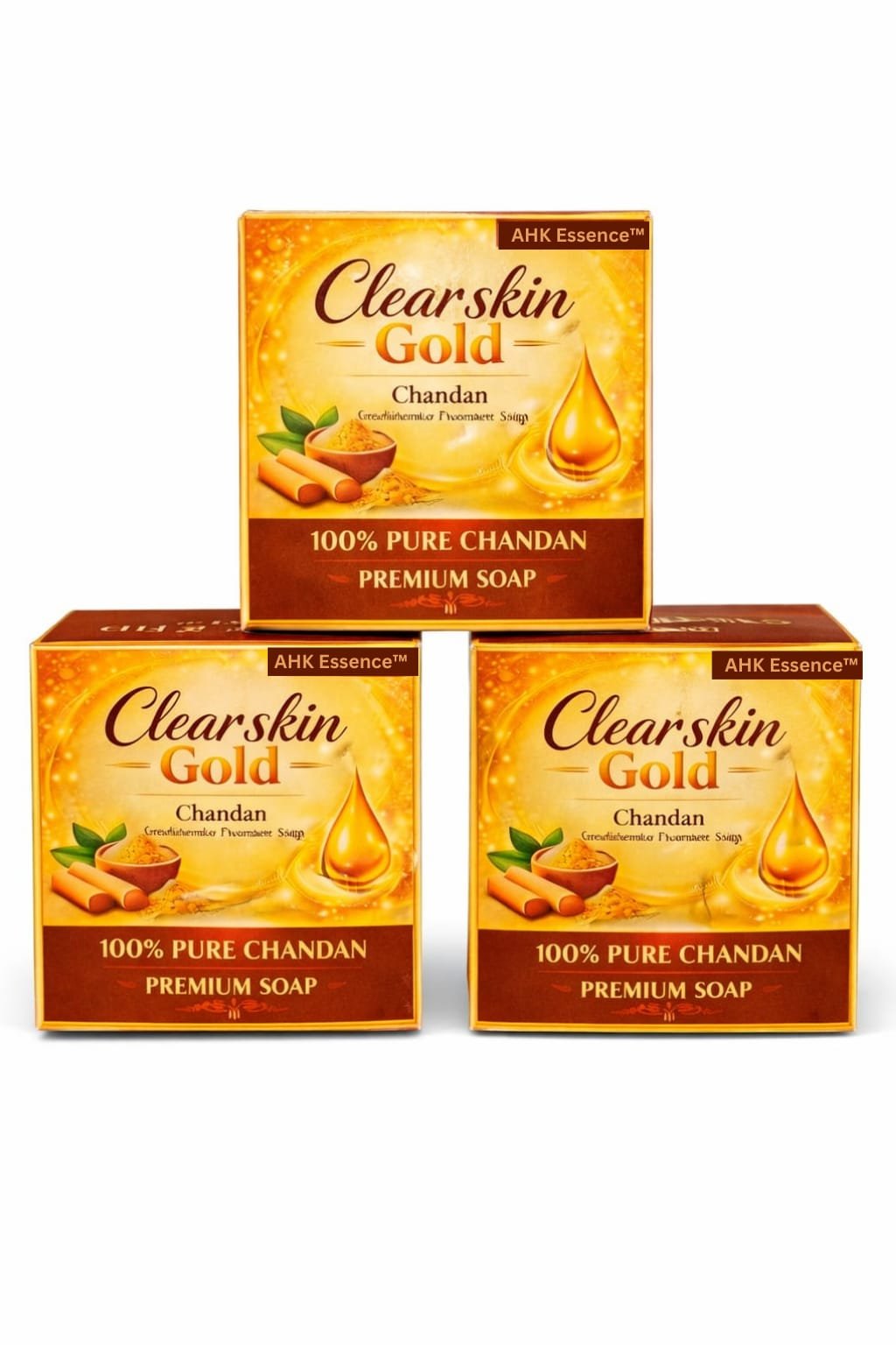 Be the first to review “AHK Essence Clear Skin Gold Sandal Soap – Natural Chandan Herbal Bathing Bar for Clear & Glowing Skin | Pack Of 3 | 125 Grams Each”